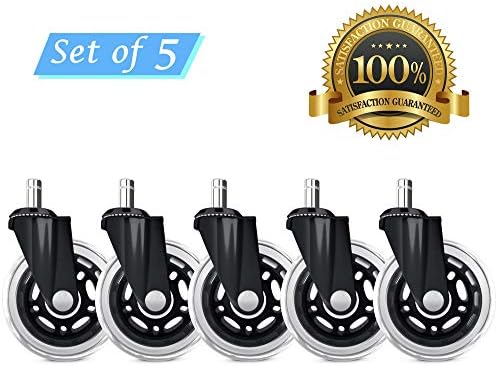 Workplace Chair Caster Wheels Set of 5 Heavy Responsibility & Secure for All Flooring Together with Hardwood 3″ Rubber Substitute for Desk Ground Mats