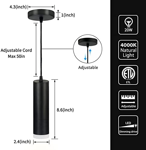 【ADJUSTABLE LED PENDANT LIGHTS】 Pendant Gentle Fixture is adjustable from 4”-50” in size to satisfy your totally different dwelling type wants.(complete lamp is 61 inches)