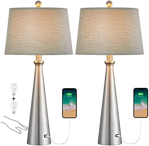 Oneach 3-Method Dimmable Contact Management Trendy USB Desk Lamp Set of two for Residing Room Bed room Bedside Nightstand Lamps Material Shade 25.8″ Classic Accent Mild Silver