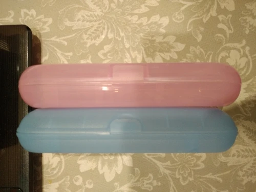 2. the blue cover holding the brush niche better fixes the brush and if shook, the brush holds tight, not knocking. In a pink case, it keeps well only from the side of the nozzle, the brush in the case “shake” knocks.