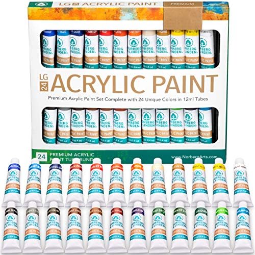 Paint Kits for Adults Norberg & Linden LG34 Acrylic Paint Set – Pack of 24 12ml Coloration Tubes, 3 Canvas Panels, 6 Brushes & Picket Portray Knife – Arts Crafts Equipment for Novices Adults & Youngsters