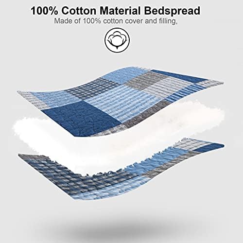 PANGUSHAN Quilts Set Queen Dimension,100% Cotton Patchwork Plaid Quilt Bedding Set,Blue/Navy Blue Reversible Bedspreads for Queen Mattress,Farmhouse Light-weight Bedding Set Mattress Unfold,All Season,3 Items