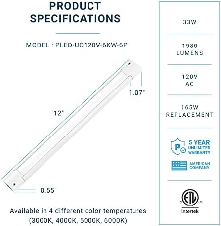 Parmida (6 Pack) LED Slim Underneath Cupboard Gentle, 120V Plug & Play, 12 Inch, 33W, Linkable, ETL-Listed, Dimmable, Energy Change Included, 1980lm, Counter, Closet Lighting, Equipment Included – 6000K
