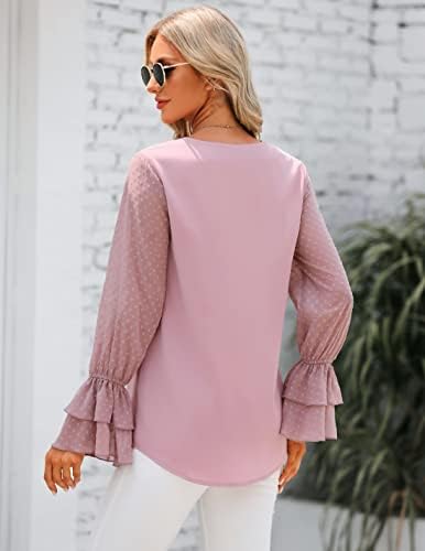 Options: Ladies’s v neck ruffled lengthy bell sleeve tops, informal unfastened shirts, lantern sleeve, layered ruffle sleeve trim, lengthy sleeve with elastic cuffs, strong coloration pullover, elegant chiffon blouses for ladies.