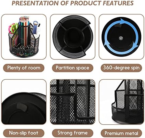 Pen Holder for Desk,Rotating Black Metallic Mesh Desktop Organizer ,Desk Equipment Workplace Desk Provides,Mesh Desktop Caddy for Workplace Faculty & Artwork Provides(Black steel)