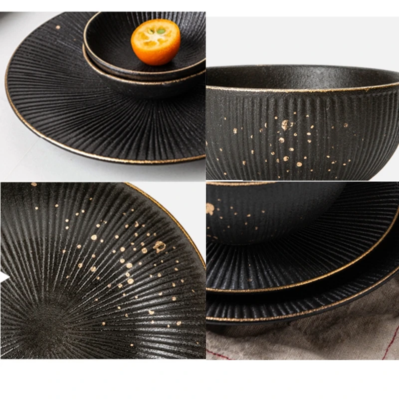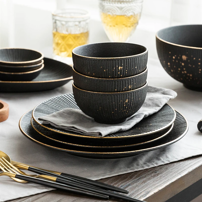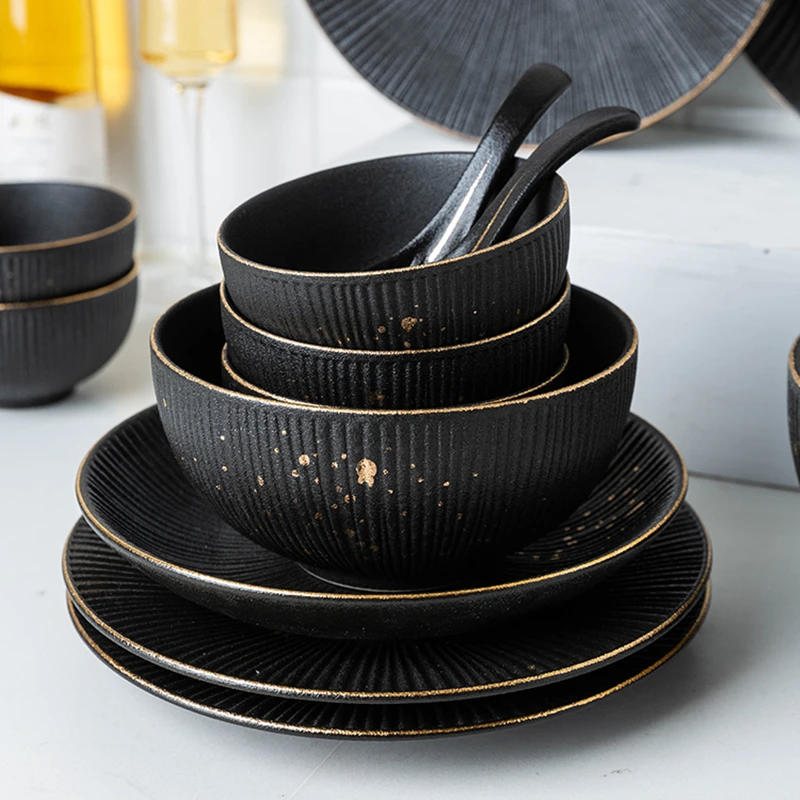 Specification: Phnom Penh Family Kitchen Tableware European Artistic Steak Plate Black Ceramic Dishes Spoon Bowl Dish Flatware Set