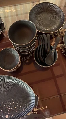 20 reviews for Phnom Penh Family Kitchen Tableware European Artistic Steak Plate Black Ceramic Dishes Spoon Bowl Dish Flatware Set
