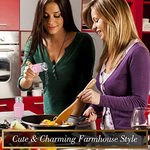 SUPER CUTE FARMHOUSE DESIGN – Attraction your family and friends together with your new cute salt and pepper shakers. Every spice shaker is crafted from premium glass and matches completely with any pink kitchen equipment or different pink kitchen home equipment.