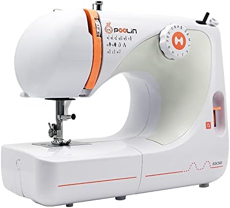 Poolin Stitching Machine for Freshmen with 27 Sew Functions and Reverse Stitching, Straightforward to Use Desktop Small Quilting and Stitching Machine for House Use Embody Equipment 5 Presser Foot, 2 Bobbins and three Needles