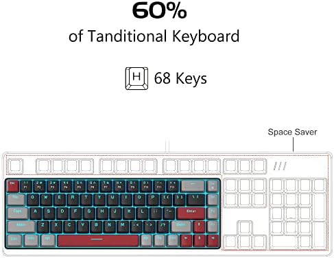 Moveable 60% Mechanical Gaming Keyboard, MageGee MK-Field LED Backlit Compact 68 Keys Mini Wired Workplace Keyboard with Purple Swap for Home windows Laptop computer PC Mac – Black/Gray