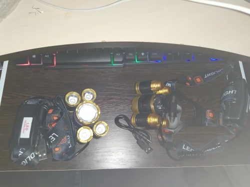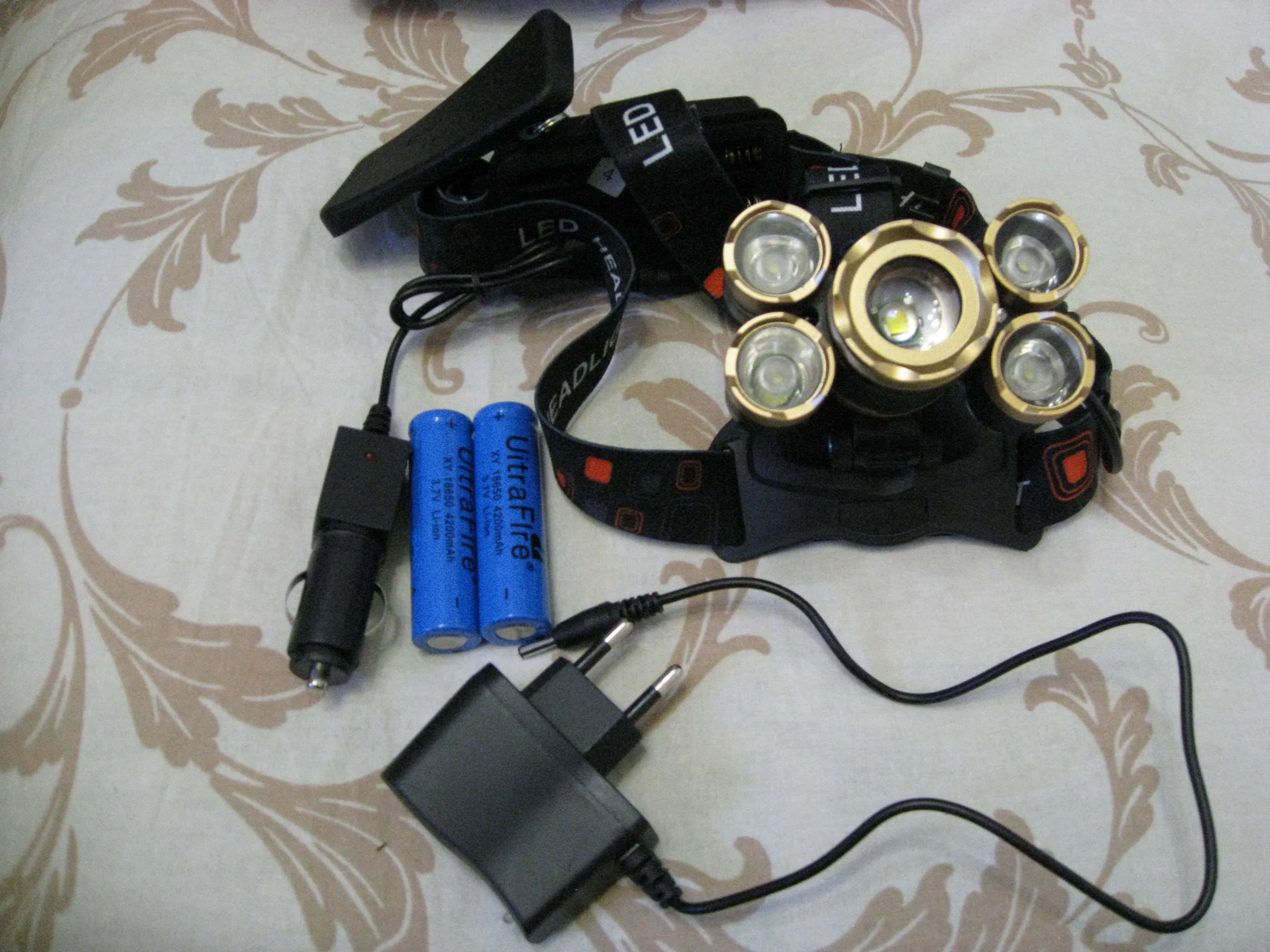 Bundle I: 1x headlamp ( 5 LED Gold ) + 1x ac charger + 2x 18650 batteries 1x automotive charger+ 1x usb charger