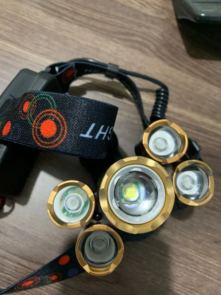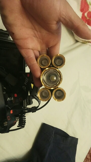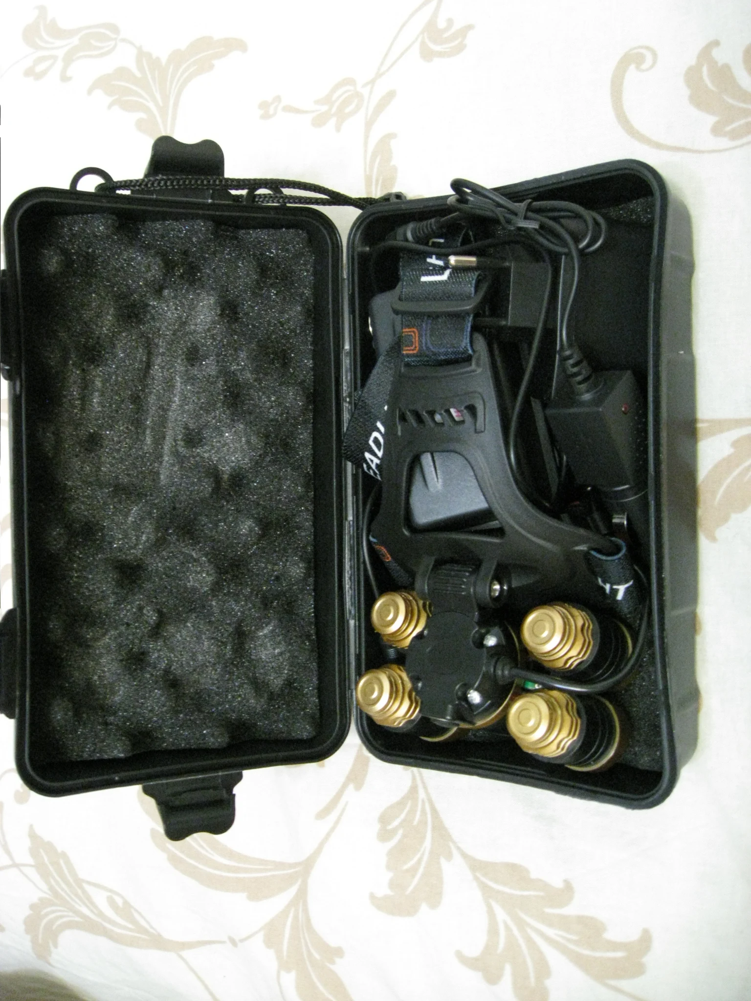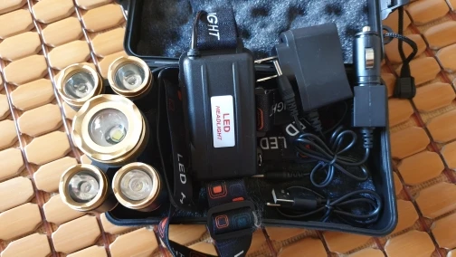 Bundle J: 1x headlamp ( 5 LED Gold ) + 1x automotive charger+ 1x ac charger + 2x 18650 batteries + 1x usb charger + 1x device field