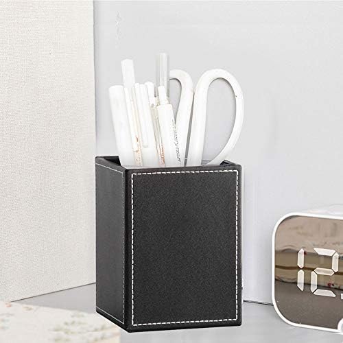 PU Leather-based Sq. Pen and Pencil Holder Desktop Stationery Field, Workplace Provides, Appropriate for Storing organizing staplers Scissors, rulers, pens Different Stationery(L:3.35 x W:3.35 H:4.72 inches, Black)