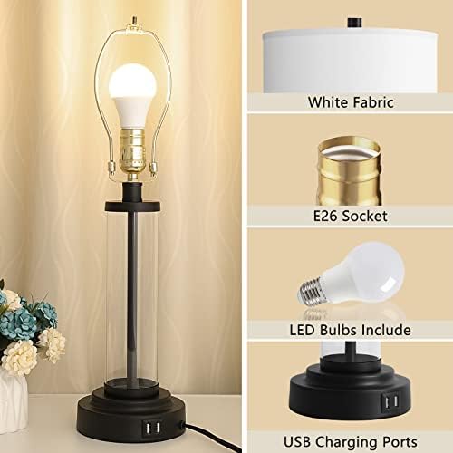 QIMH Contact Management Desk Lamps Set of two with USB Ports, 3-Means Dimmable Bedside Lamp for Residing Room Bed room Home, Trendy Nightstand Lamp with 2 LED Bulbs(Black)