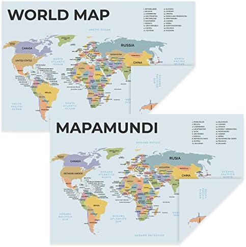 Quarterhouse English-Spanish Instructional Map Set, Classroom Studying Supplies for Okay-12 College students and Academics, Excellent for ESL and Spanish-Language Learners, Double-Sided, Set of seven, 12×18″, Further Sturdy