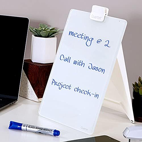Elevate your house with the Quartet Dry-Erase Desktop Easel. The subtle, frameless design provides a contemporary twist to conventional whiteboards. Alter the board orientation to suit your desk house. Lay the board flat for comfy writing or prop it upright for top visibility. The modern design blends with any décor whereas including trendy fashion to your house. Non-absorbent glass enables you to write, erase and rewrite on a clear floor. The board resists stains and ghosting, which permits clear viewing with out distracting streaks. Securely maintain papers and paperwork in place for fast reference with the detachable clip. The sturdy sturdy glass floor resists scratches and dents and is designed for long-term efficiency. It’s splendid for on a regular basis use and comes with a 15 12 months guarantee. Board measures 9″ x 11″ and comes with 1 dry-erase marker. For finest outcomes use Quartet Glass Board Equipment, offered individually.