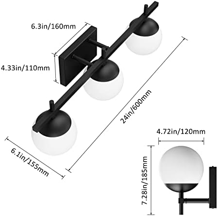 Be the first to review “Ralbay Mid Century Fashionable Lavatory Vainness Lights 3-Mild Matte Black Milky Glass Fashionable Lavatory Vainness Lights Over Mirror, Black Wall Mild for Lavatory (Exclude Bulb)”