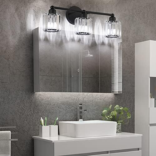 Ralbay Trendy Matte Black Self-importance Lights Fixture 3 Lights Crystal Toilet Self-importance Lights Over Mirror Crystal Toilet Wall Lighting