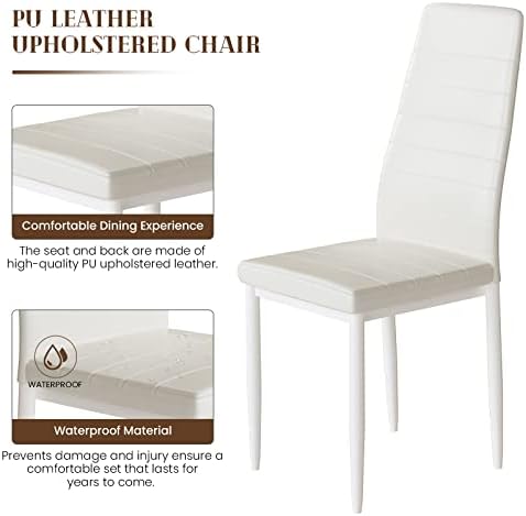 【Trendy Kitchen and Eating Set】5-Piece Eating Desk Set: Our kitchen desk and chairs set consists of 1 counter top fake marble tabletop and 4 Eating Chairs for a contemporary and stylish fashion that can swimsuit any decor fashion eating room. The expansive clean floor holds meals, drinks and bouquets, and the eating desk seats 4, making it excellent for household meals and small gatherings.