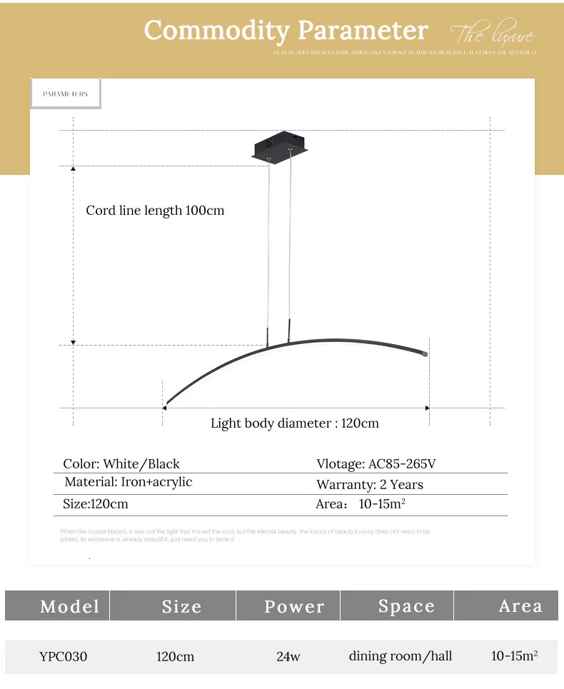 Body Color: Black color Size: Warm white Wattage: 120cm