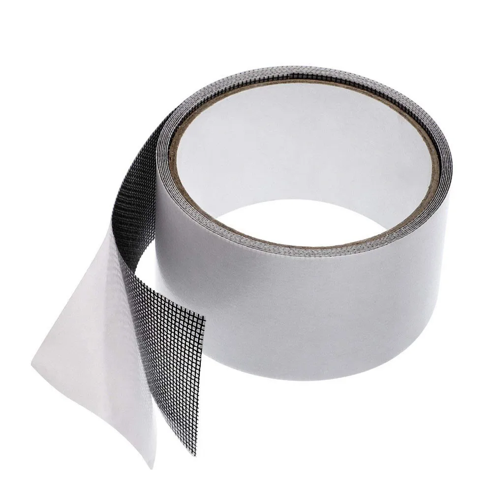 es como una cinta americana pero con cuadritos, no queda como la mosquitera pero hace el apaño