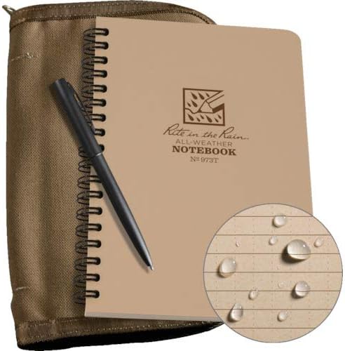 Ceremony within the Rain Weatherproof Facet Spiral Equipment: Tan CORDURA® Material Cowl, 4 5/8″ x 7″ Tan Pocket book, and Weatherproof Pen (No. 973T-KIT)