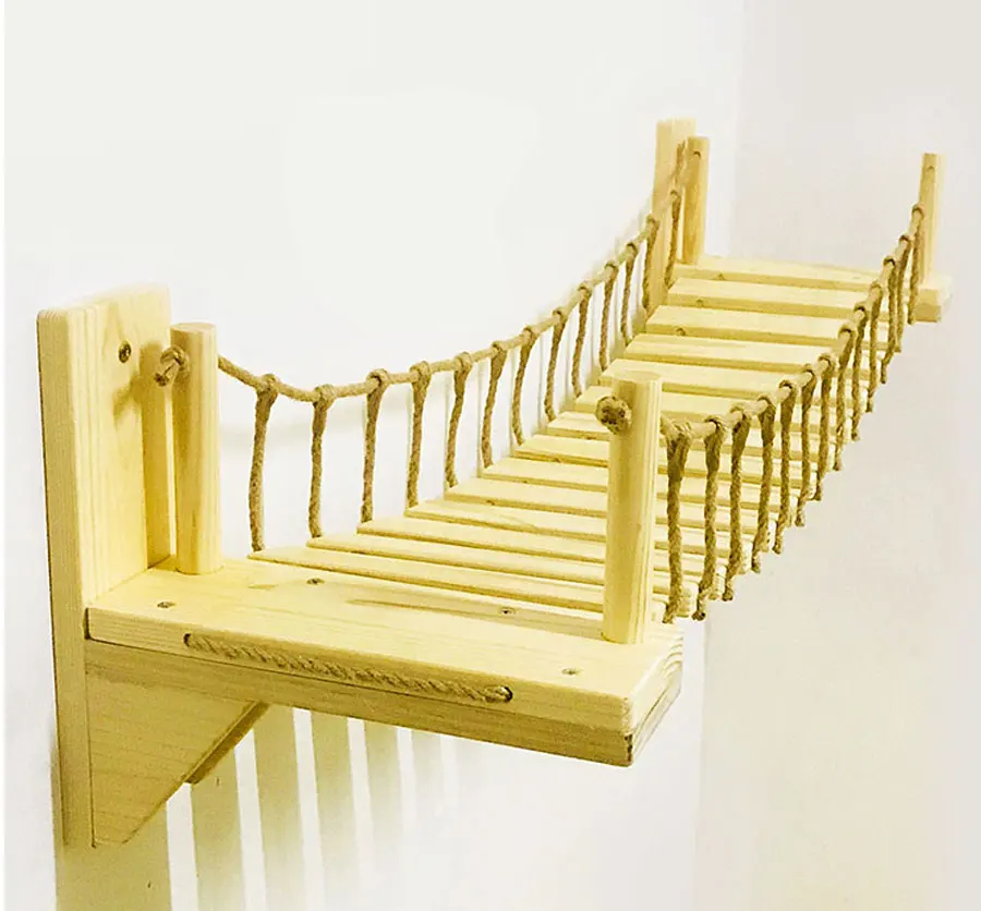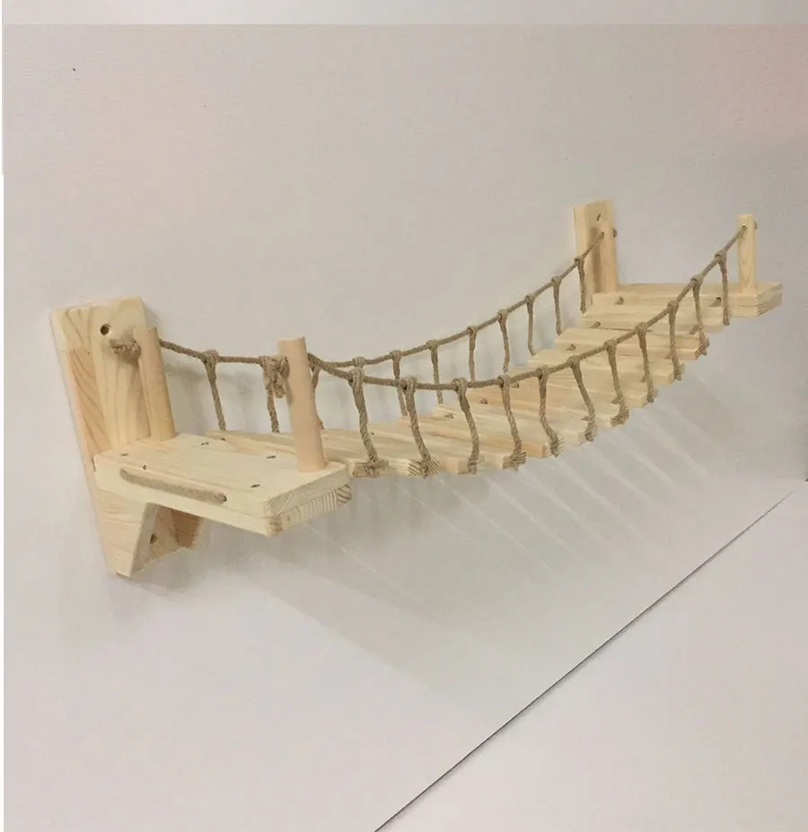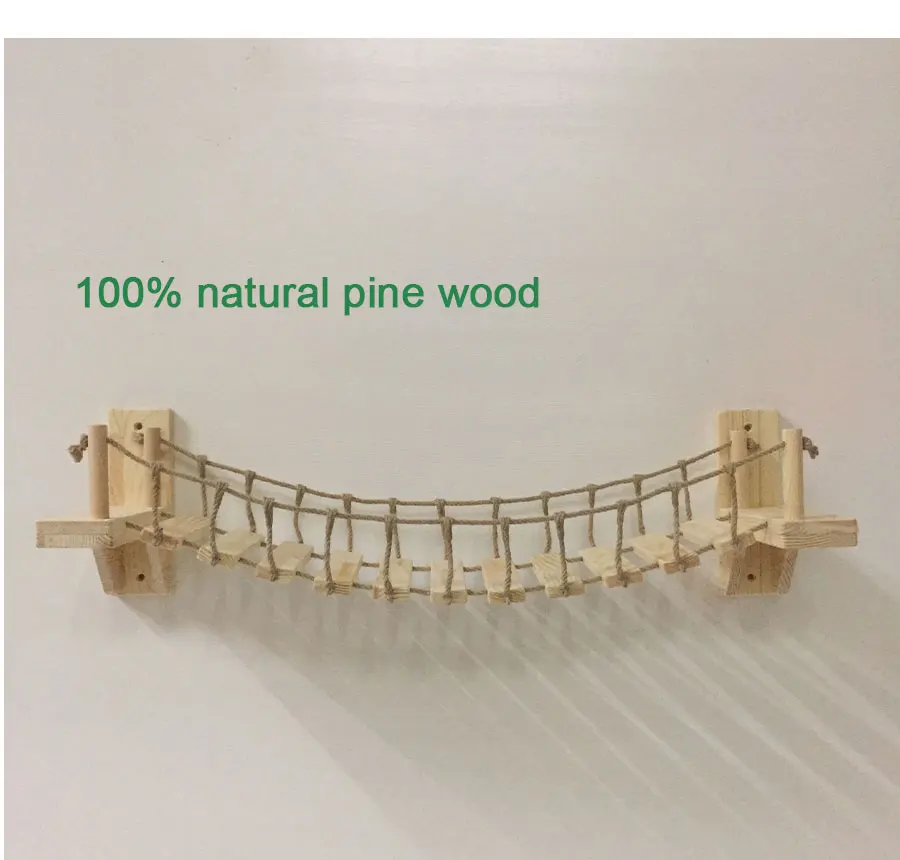 Specification: Roped Cat Bridge Climbing Body Wall Mounted Wooden Cat Tree Home Mattress Sisal Scratching Submit Leaping Bridge Pet Furnishings 90cm