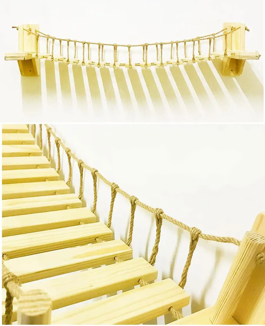 5. Environmental safety/sturdy/sturdy load bearing, This bridge is fabricated from pinewood and sisal.