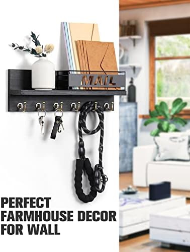 Rorecay Key and Mail Holder for Wall: Straightforward Set up Farmhouse Mail Organizer Wall Mount with Measured Template, Paulownia Wooden Key Hook Rack with Shelf for Home Hallway Decor, Black