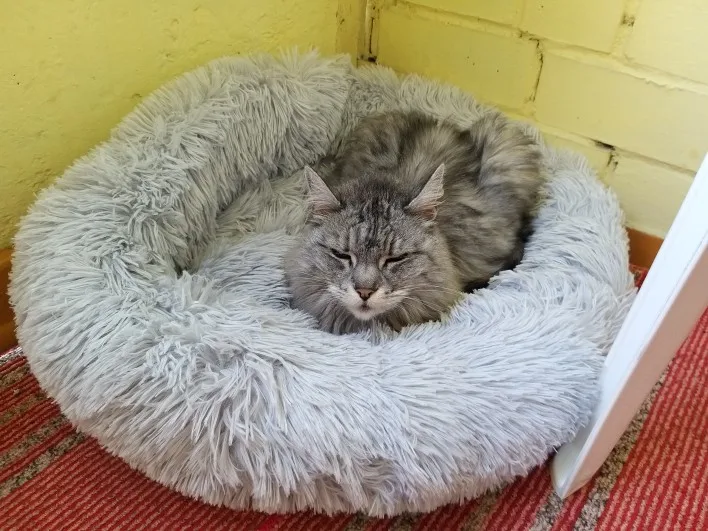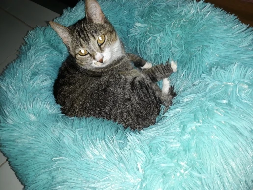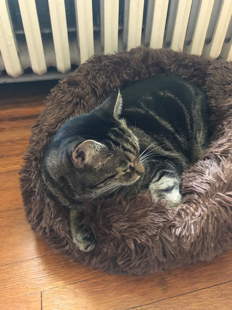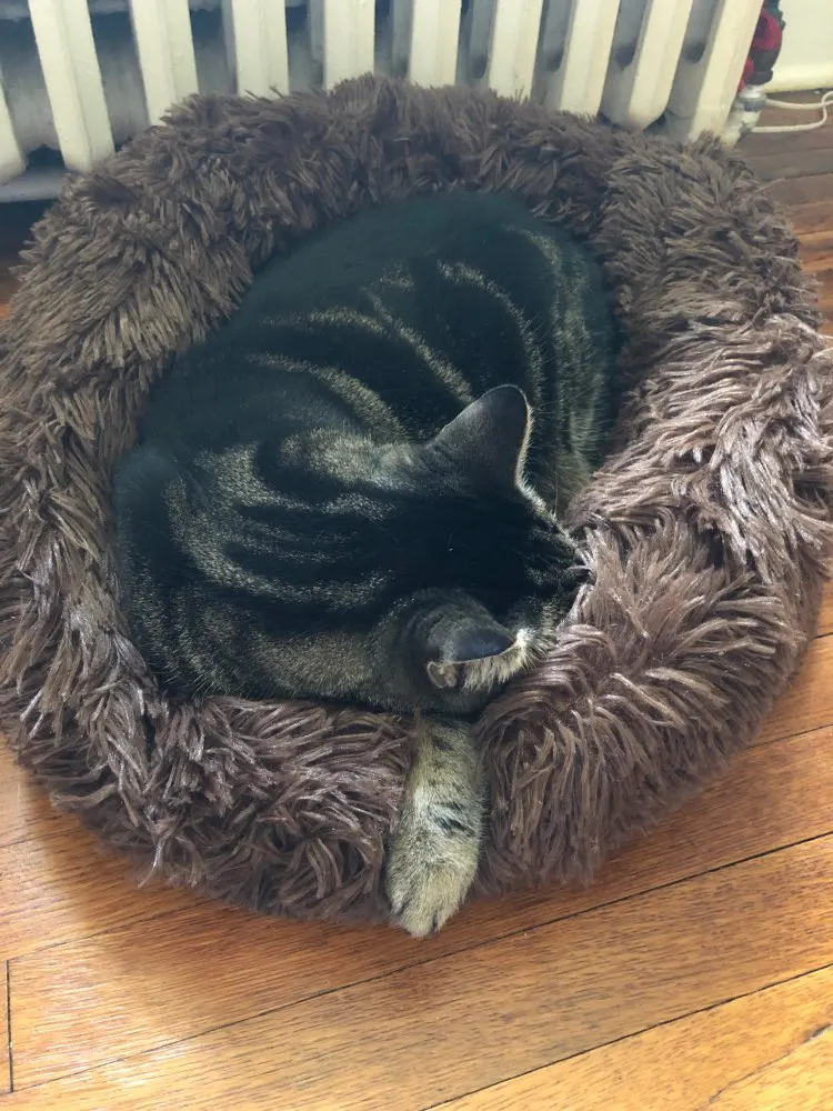 She settled in right away. Perfect fit! Brien is a nice, neutral color. Now I’ll buy three more for my other three cats.