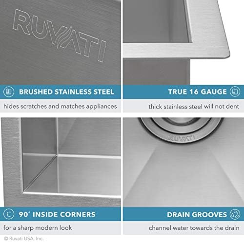 Ruvati 23″ x 18″ x 12″ Deep Laundry Utility Sink Undermount 16 Gauge Stainless Metal – RVU6100