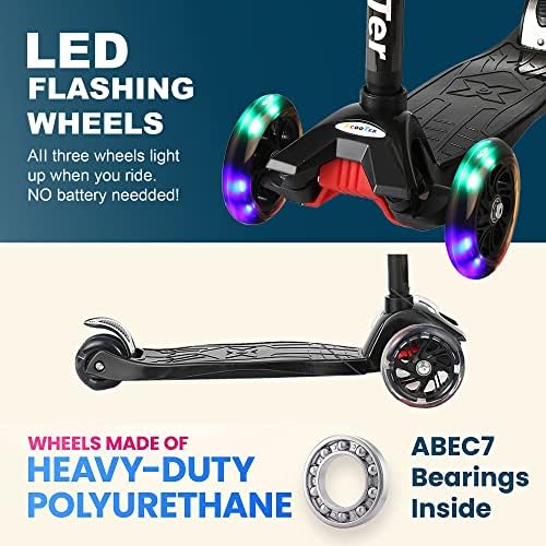 Scooter for Youngsters,3 Wheels Scooter,Youngsters Scooter 4 Adjustable Top,Lean to Steer, Additional-Broad Deck, Youngsters Scooter with LED Gentle Up Wheels ,for Toddlers Women & Boys from 2 to 14 12 months-OldLearn to Steer