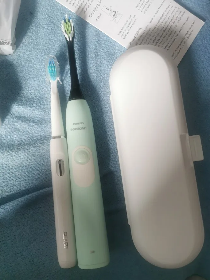 Fast shipping, spot after two weeks. Actually toothbrush next two included one. Well packed, not damaged, charged. Light, small, have 4 modes. Work quietly, compared to the original regards as “fly” XD