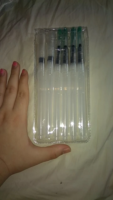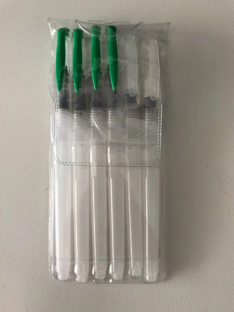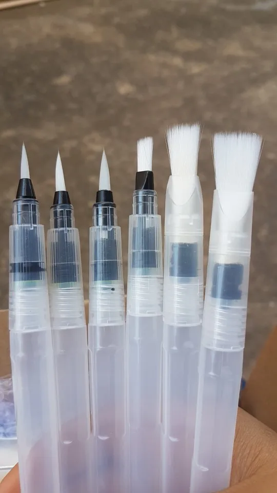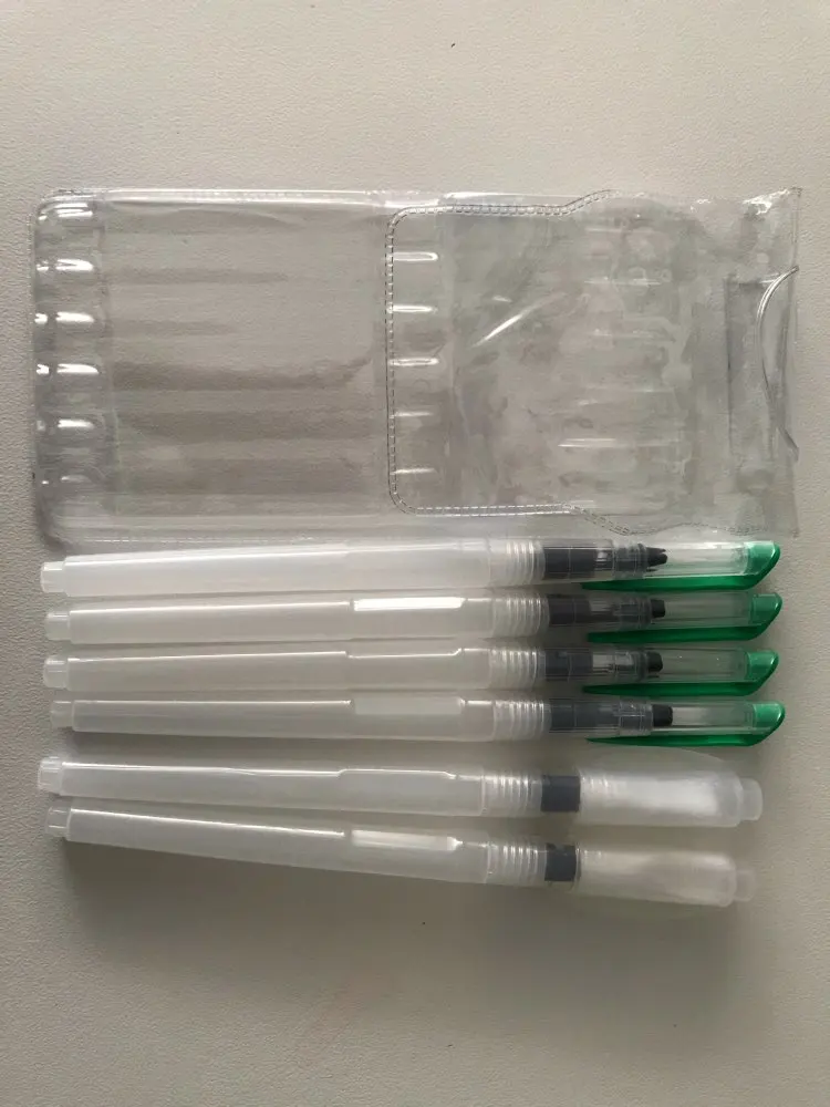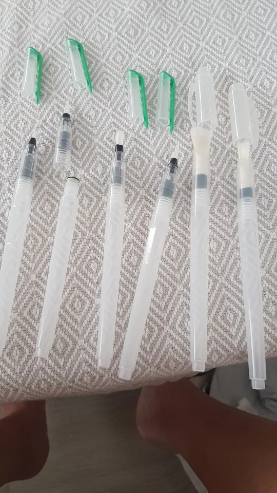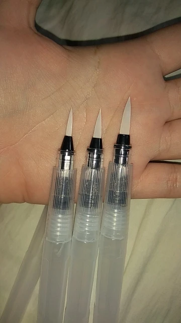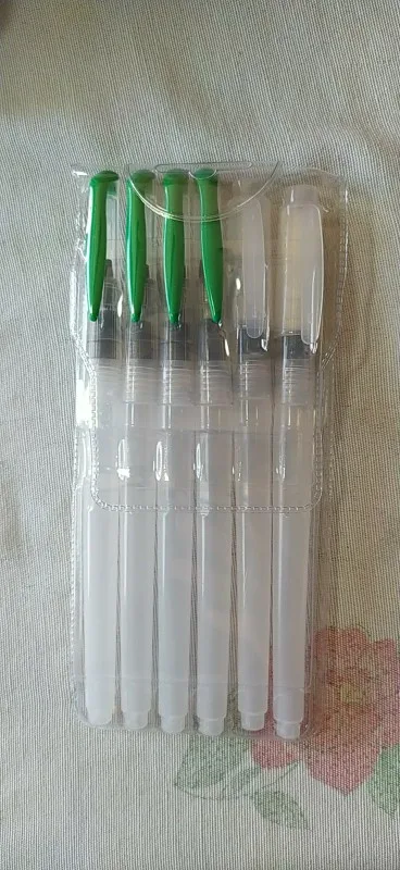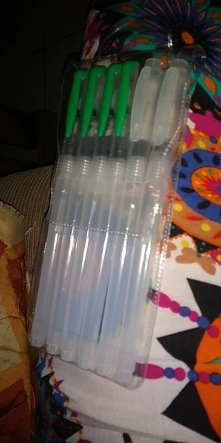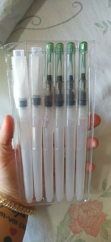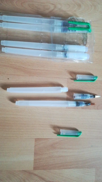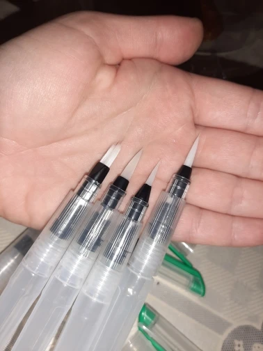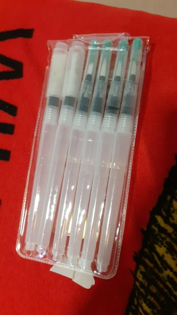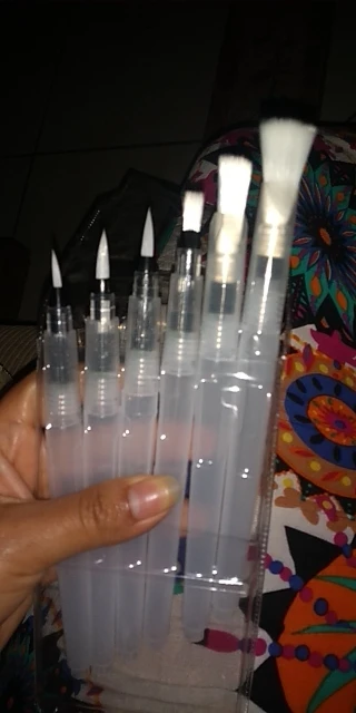 The product arrived on time, despite the office staff due the covid-19 reduction. Was perfectly packed (the case watercolor brushes was placed along with a case that I bought, both were wrapped in bubble wrap placed in a cardboard box that was packed in a black plastic) and arrived on time. Is exactly as described. Plastic tube is moderately soft, facilitating the water flow control. Brush bristles are synthetic hairs are very skinny and very soft. The tip of the finest brushes come with some type of oily substance to leave the sharp tip, the that can come with time. Threading water seems a little loose, leaving the product susceptible to possible accidents, but it is something that only know when use for a long time. I am very satisfied with the product is with the store, super recommend and plan to buy more soon!