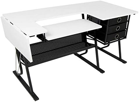 Discovering the time and a spot to create is at all times a problem. The Eclipse pastime/stitching heart options a big 60.25-inch-wide desk high work desk that permits you to unfold out, minimize or modify material and patterns. The 9.5-inch-wide facet shelf folds down if much less house is required when not in use. The three material storage drawers and a big decrease shelf can be found, so you’ll be able to manage your stitching provides and preserve them shut. The distinctive platform shelf lowers and permits you to modify for a wide range of stitching machine base heights. The heavy gauge metal building and 5/8-inch-thick high make it a sturdy and sturdy desk for years of use. The Eclipse pastime/stitching heart may also be used with a pc or for further workspace in any room.