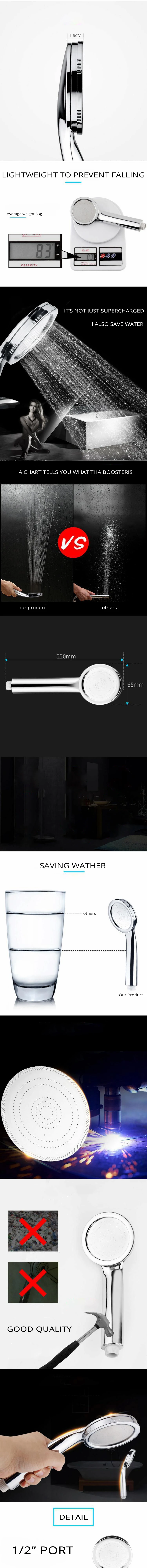 Specification: SHAI New arrival Excessive Strain Bathe Head Toilet Water Saving Bathe Head Highly effective Boosting Spray Tub Handheld Bathe Head