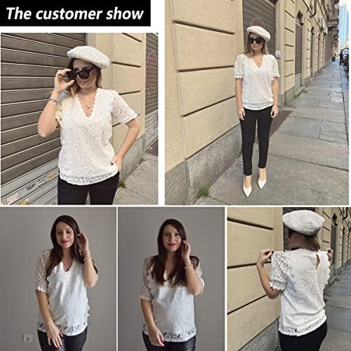 SHEWIN Ladies’s Attractive Lace Crochet V Neck Brief Sleeve Blouses Tops Shirts