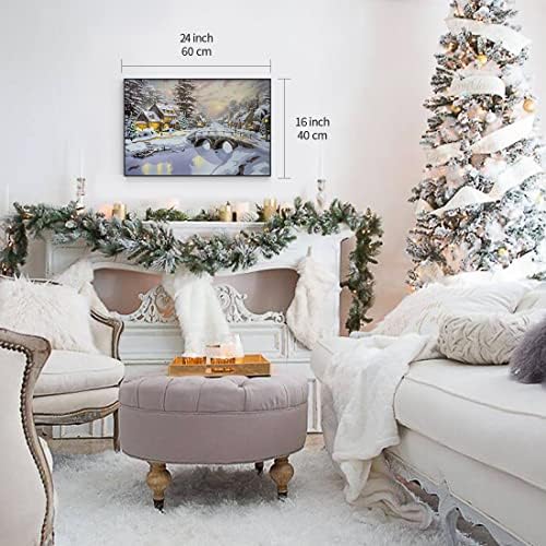 Shine Shone Artwork Framed Dwelling for The Charming Christmas Holidays Canvas Wall Artwork Tree Village Idyllic Prints Festive Decorations (Christmas-I, 24″x16″)