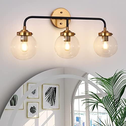 Be the first to review “SineRise Black and Gold Self-importance Gentle 3-Gentle, Brushed Brass Lavatory Gentle Fixtures with Clear Glass Globe Shade, Modern Wall Bar Sconce Lighting Over Mirror” Cancel reply