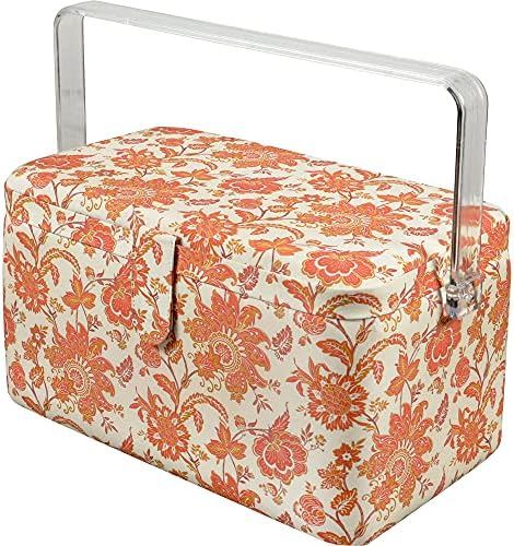The Singer Massive Deal with Sew Basket with Paisley Floral Print is a perfect stitching equipment for anybody searching for fashionable design and high-quality craftsmanship. Measuring 12.625” extensive by 7.875” deep and standing 6.625” excessive (together with the deal with), this stitching basket is giant sufficient to suit stitching needles, thread, bobbins, and an assortment of stitching equipment and instruments. The basket is designed with a strong rectangular body lined in a top quality, wrinkle-free cloth. The sample of shiny coral and gold paisley flowers on a beige background mixed with its mushy rounded edges and collapsible acrylic deal with give the stitching equipment a contemporary, streamlined look that makes a classy journey case for stitching necessities. The basket comes with a starter set of high quality stitching notions, together with 8.5” consolation grip cloth scissors, a tape measure, a deluxe seam ripper, 4 spools of thread, a needle threader, a thimble, and an identical paisley pin cushion. The organizer incorporates a magnetic snap closure to maintain contents safe in addition to a detachable mushy tray insert that provides additional house and retains your stitching provides neat and arranged. This versatile storage basket additionally doubles as a classy storage container for bobbins, crafting instruments, scrapbooking provides, coloured beads, artwork provides, costume jewellery, or magnificence merchandise. With so some ways it may be used, purchase one for every of the areas you wish to manage. That is the proper high-quality stitching basket for simple journey, ample storage, and optimum group.