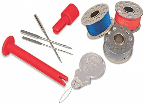 Comes with thread, bobbins, needle, needle threader, and spinner