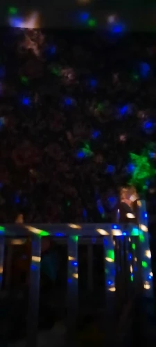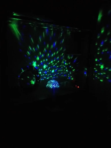 Very beautiful projector lamp. Everything works, white light mode, multi-colored color overflow mode, mode in motion and without. No music. Quietly buzzes when it turns. very beautiful and for a child simply, super. recommend.
