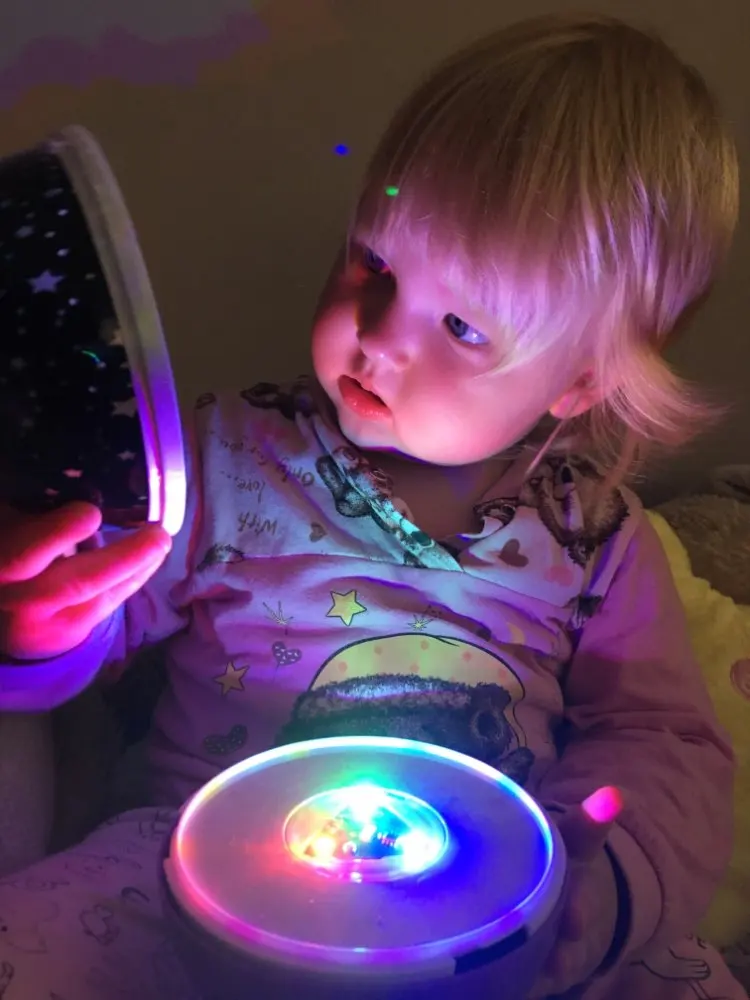 Super projector and night light, the child is delighted and we too, thank you very much to the seller. Well packed, came safe and sound.