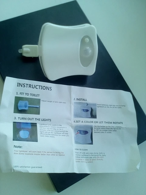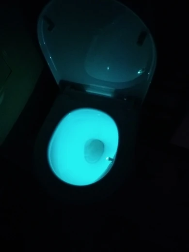 Very convenient and necessary thing, especially who has children. The tightness of the head with the LED is weak, I advise immediately before use to glue something if you attach to the toilet. I say I parsed and poured hot glue. But it was possible and not to glue, K. In my narrow Soviet bathroom did not work well, or the light is weak (the night light does not turn off), whether the side location on the toilet did not allow it to work normally (does not see an incoming person), and in the center, well, you can not, you know))) left the position, hung on the shelf above the toilet and it turned out perfectly, Even better in lighting, well, and naturally it will always be dry)))