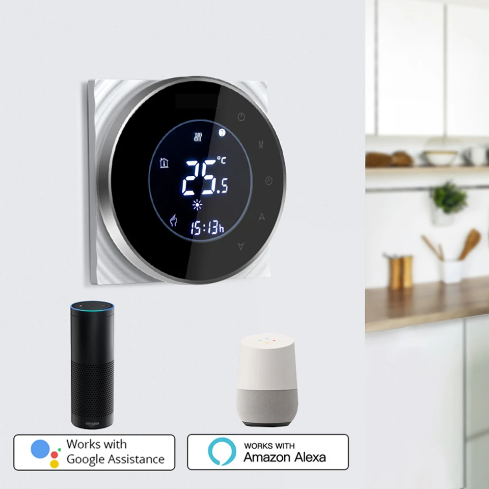 WIFI Good Contact Thermostat LCD Display screen Backlight Water Heating Electirc Ground Heating Water Fuel Boiler Temperature Controller Wi-fi Distant Voice Management Tuya Good Life App work with Amazon Alexa Google Assistant