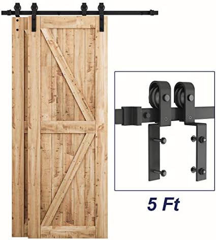 SMARTSTANDARD 5 Toes Bypass Sliding Barn Door {Hardware} Equipment – for Double Wood Doorways – Easily & Quietly – Simple to Set up – Match 30″ Huge Door Panel (J Form Hanger)