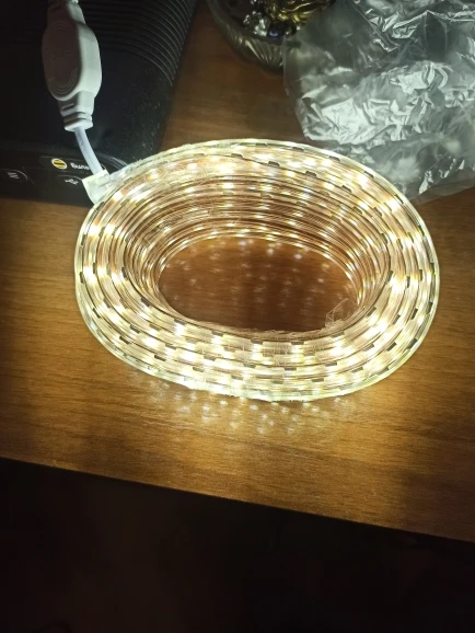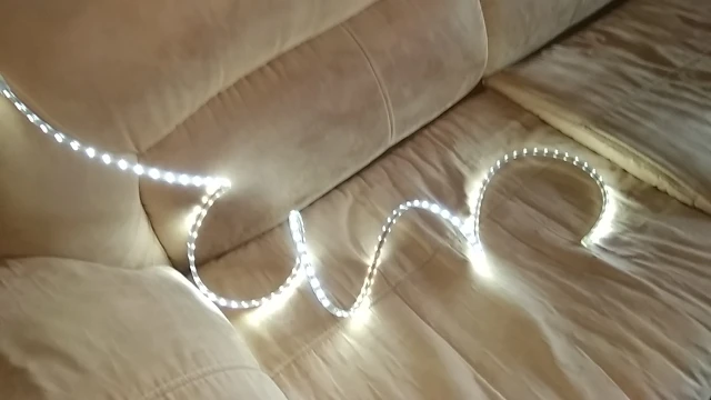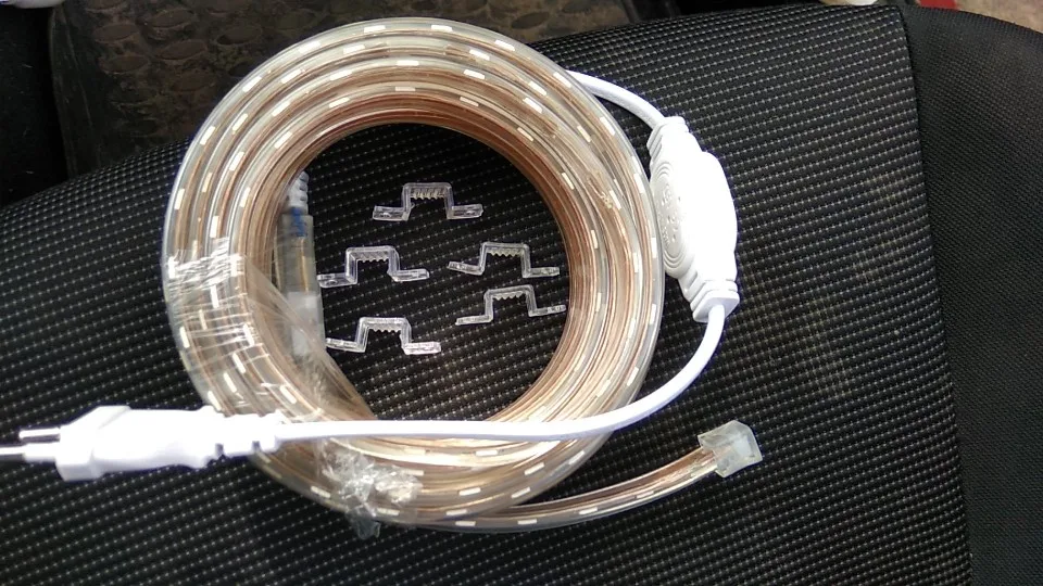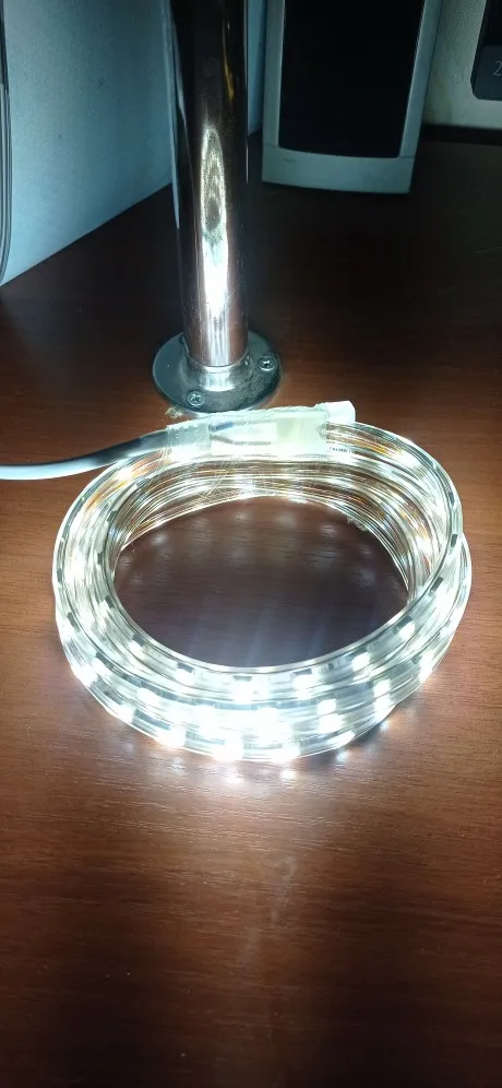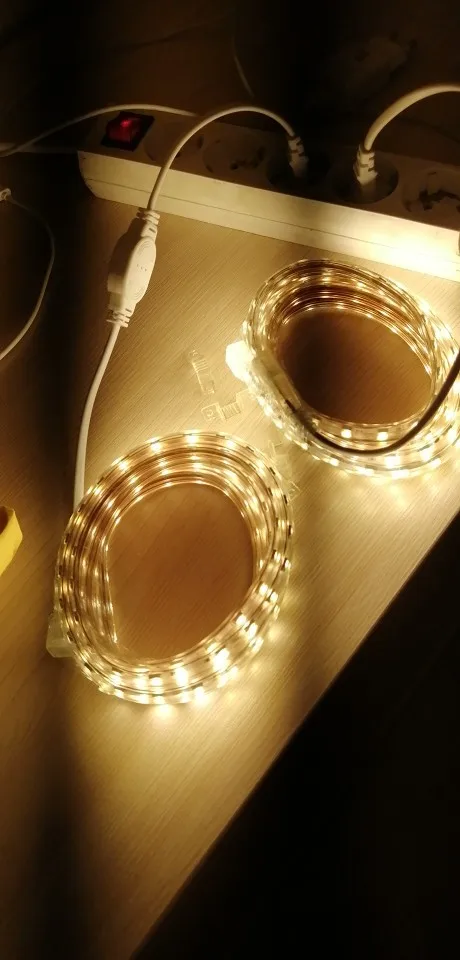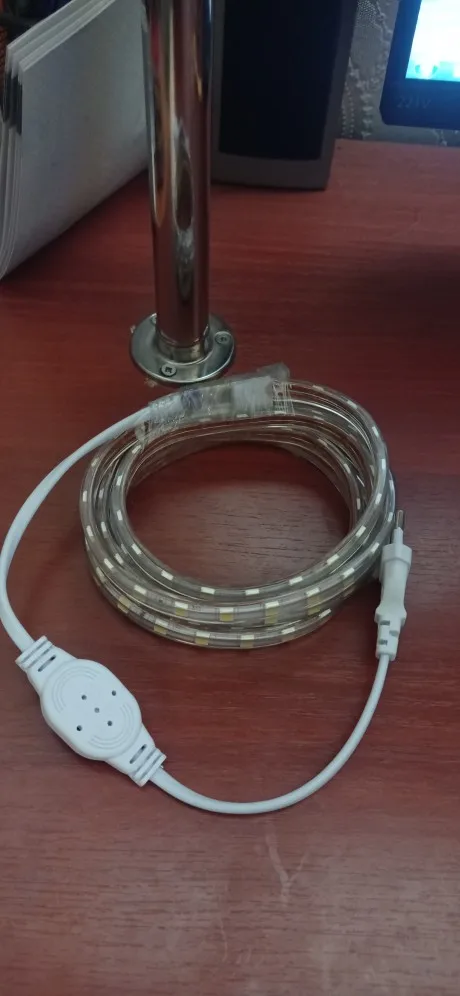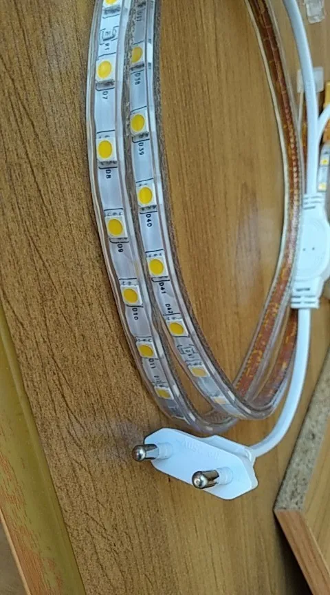 Ordered 1 meter shines very pleasantly yellowish light at night that it is necessary not to beat in the eyes, before that, I ordered white in the kitchen, too, everything is fine. I’ll attach two third-party Scotch and staples for wiring. The problem switch decided just to insert the switch between the plug and the box. Light diodes are a little flickering so that as the main light will not suit the eyes tired and not very bright they maybe because of the silicone shell.