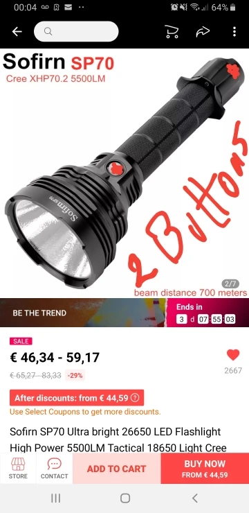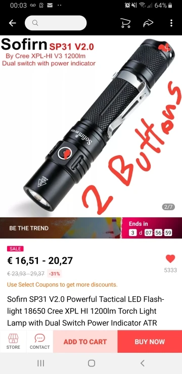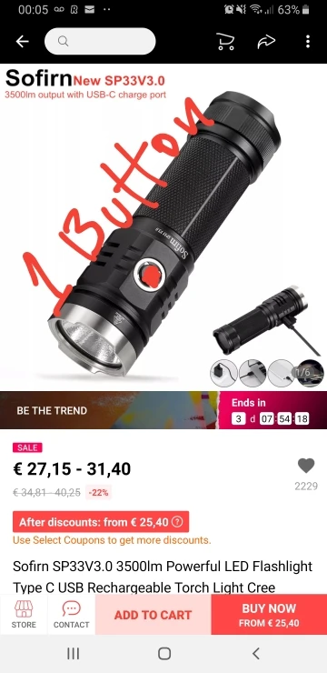20 reviews for Sofirn SP33V3.0 3500lm Highly effective LED Flashlight Sort C USB Rechargeable Torch Mild Cree XHP50.2 with Energy Indicator