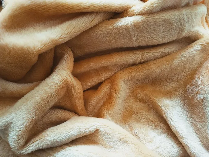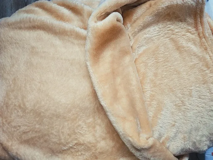 Купила, чтобы использовать как покрывало на постель. До Новосибирска шёл 19 дней с момента заказа. Цвет ближе к персиковому, чем к бежевому. Качество хорошее, мягкий и приятный. Брала на кровать 200х160. Запаха нет.