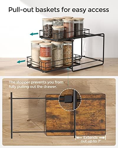 SONGMICS Spice Rack, Pull Out Cupboard Organizer, Countertop and Below Sink Organizer with Basket Drawers, Kitchen Group, House-Saving, 14.6 x 11 x 12.6 Inches, Rustic Brown and Black UKCS026X01